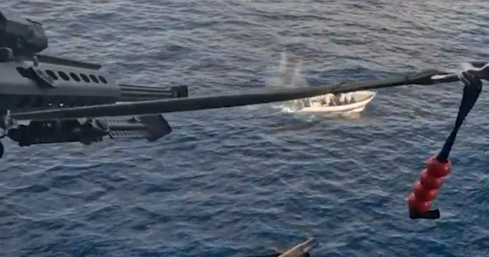 Video shared by the Coast Guard showed the alleged drug boat being stopped by a helicopter crew who fired shots toward the vessel. It’s not clear what happened to the crew of the go-fast boat.