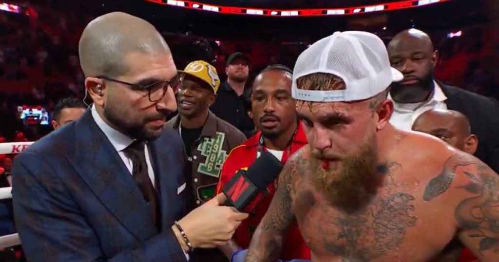 Jake Paul spits blood after revealing broken jaw from Anthony Joshua fight