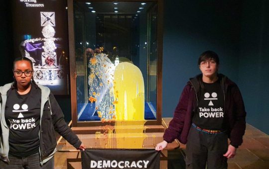News Protesters arrested after smearing custard and crumble on case holding King Charles’ Crown Jewels
